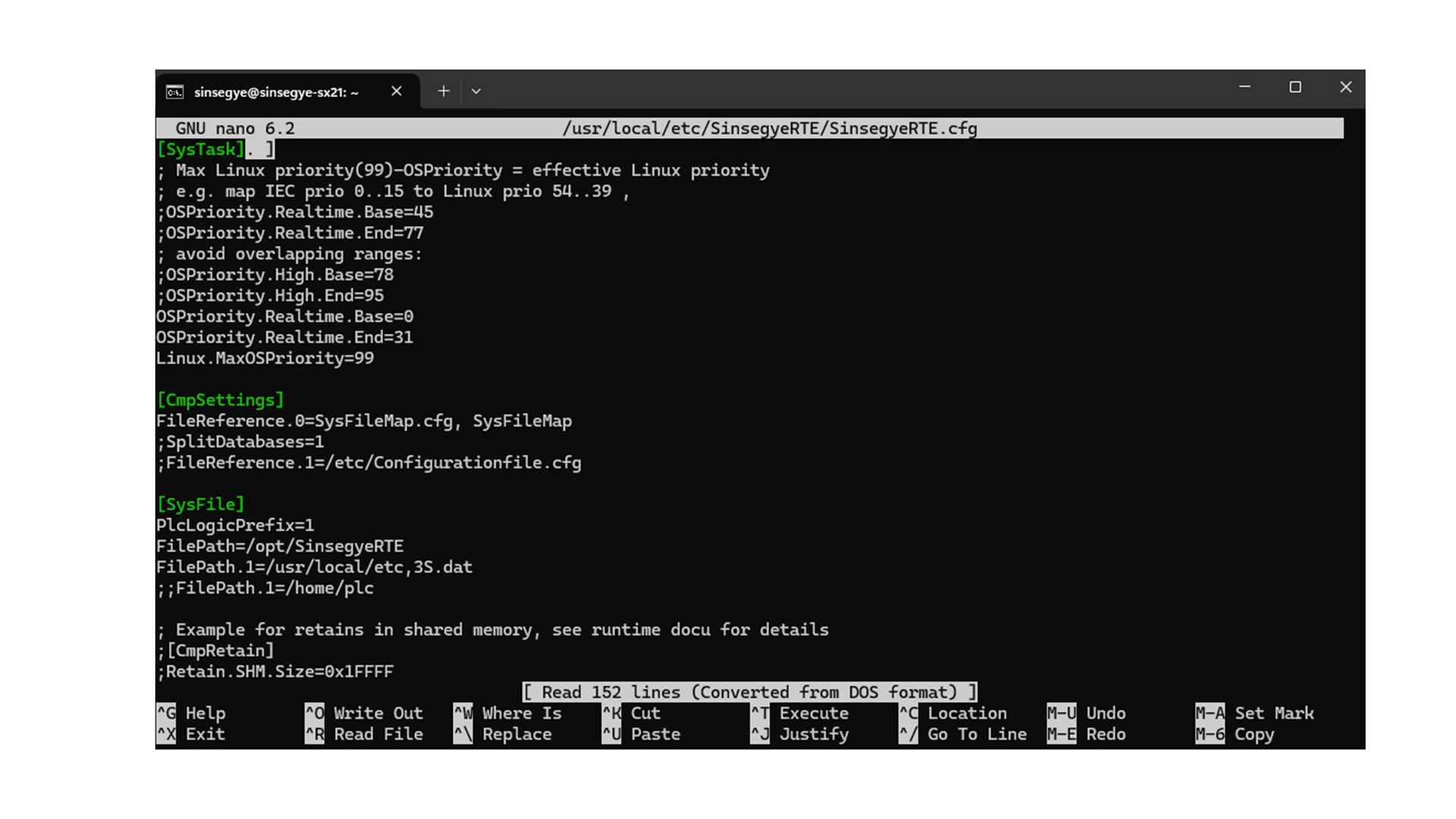 使用nano命令打开SinsegyeRTE.cfg文件