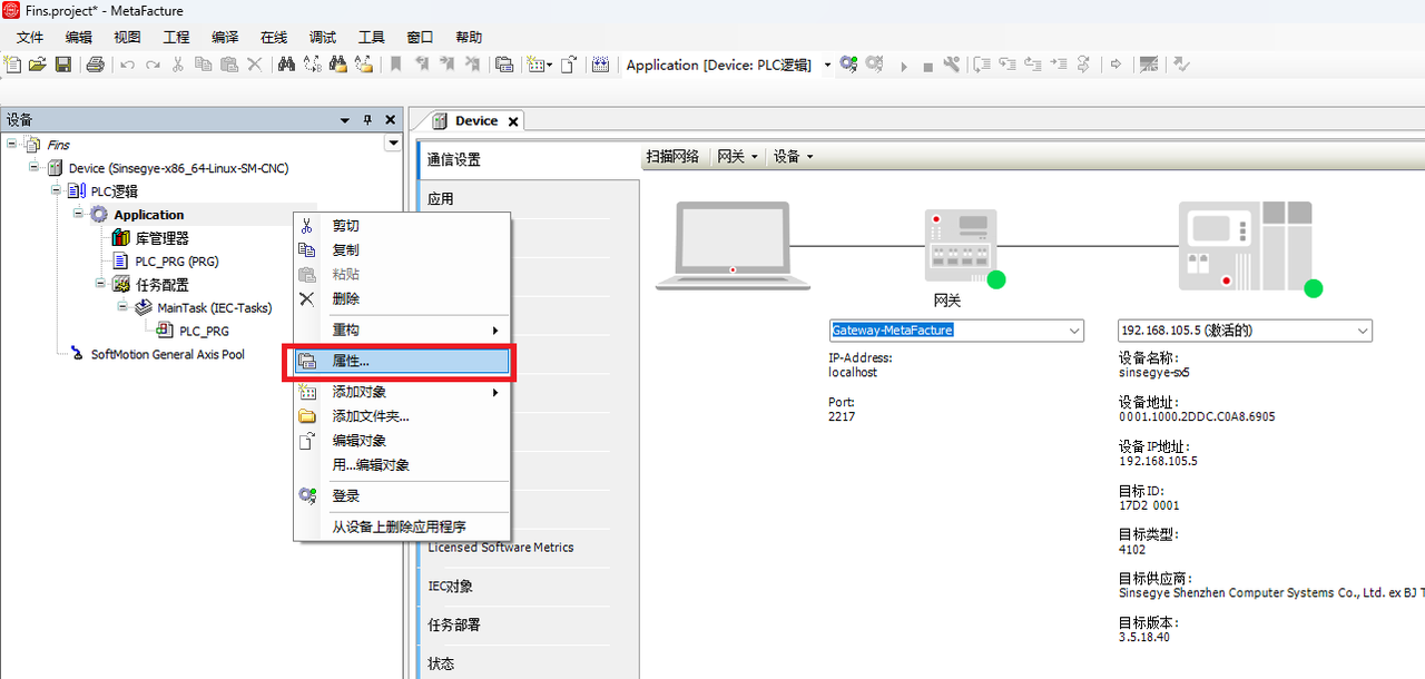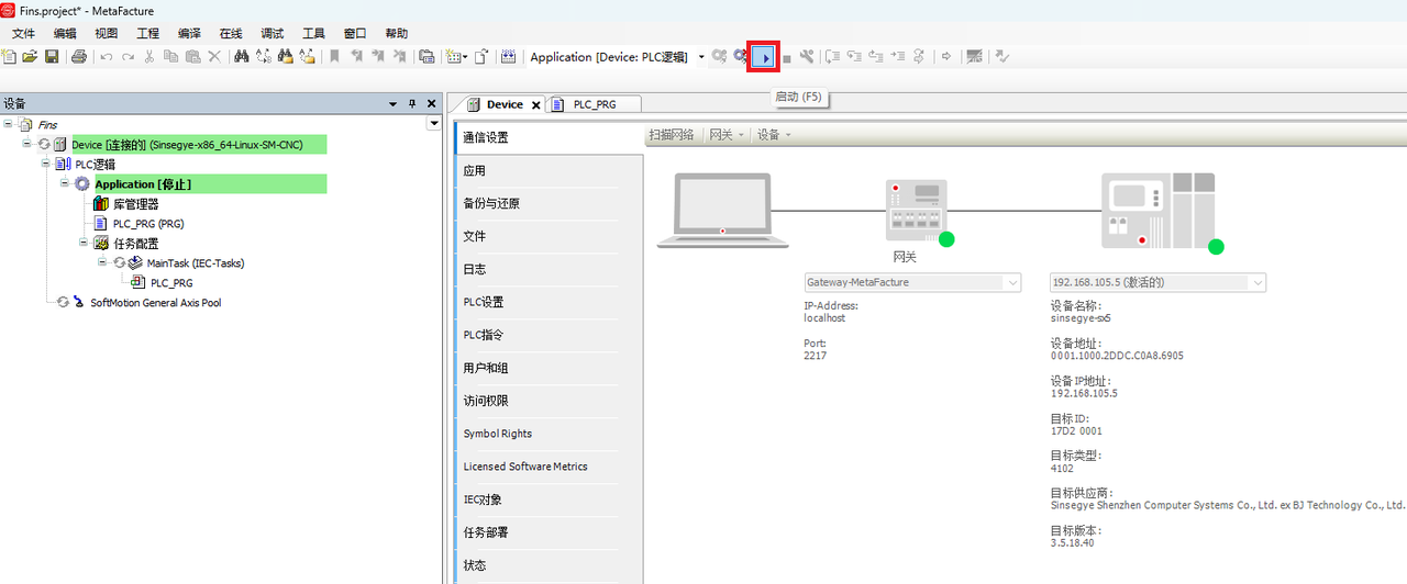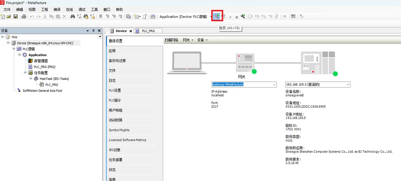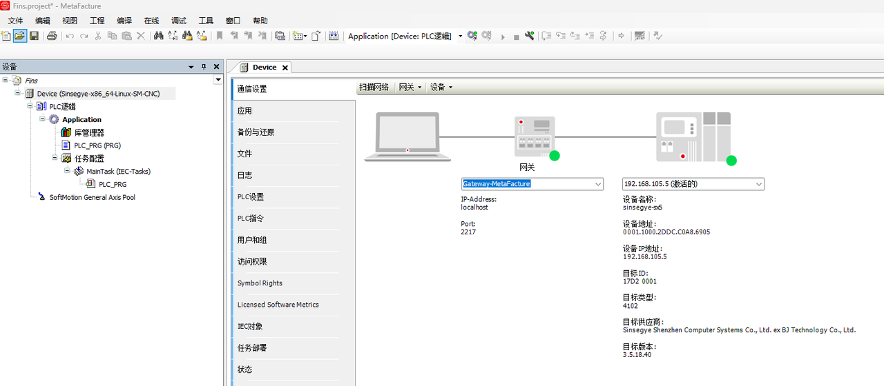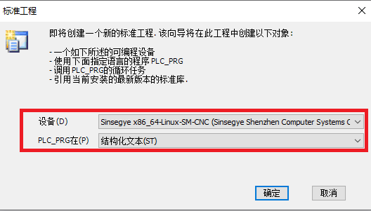3.选择中科时代Sinsegye设备,选择PLC编程语言(本例为ST语言)