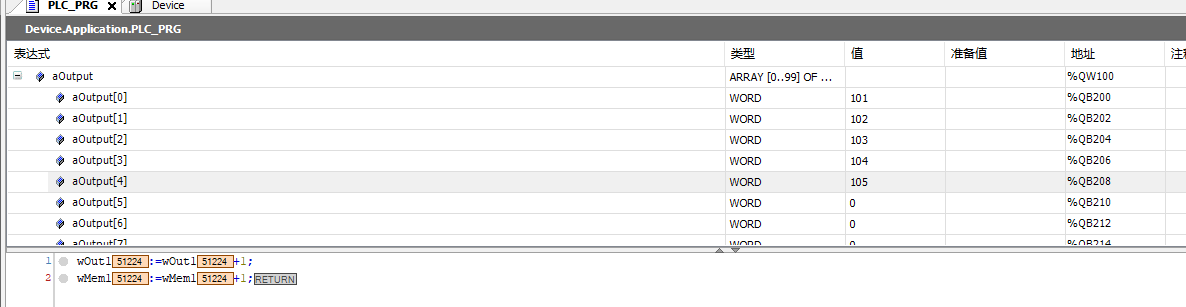 aOutput数组对应地址为Q区100~199(CIO32868~CIO32967)