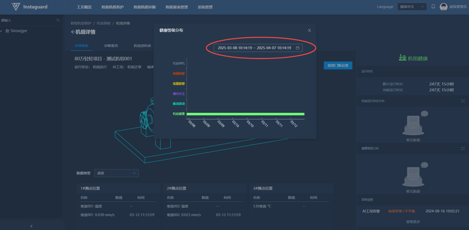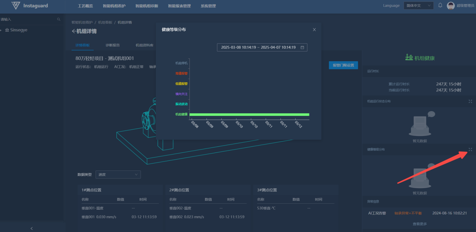 进入机组看板后,点击健康等级分布按钮进入健康等级历史查看页面。
