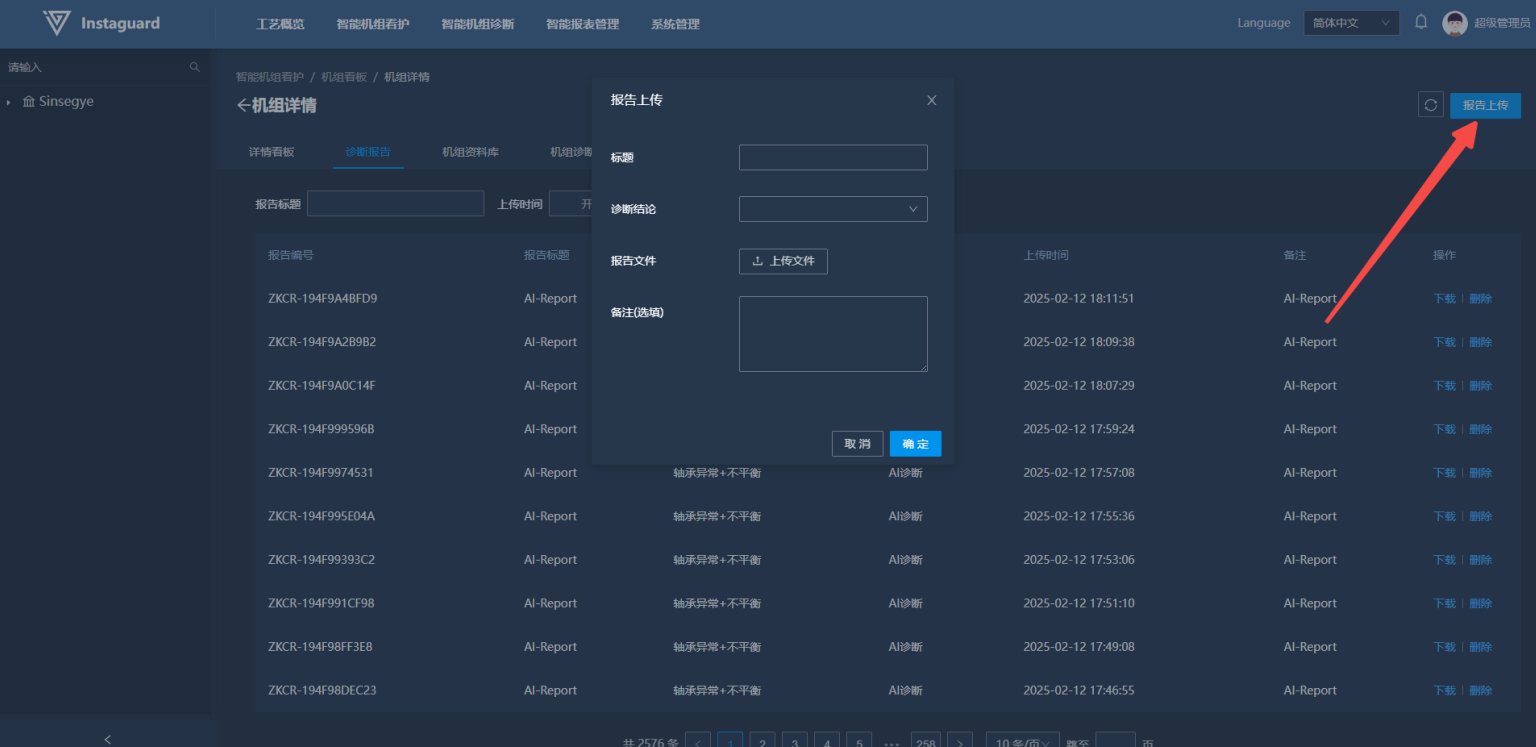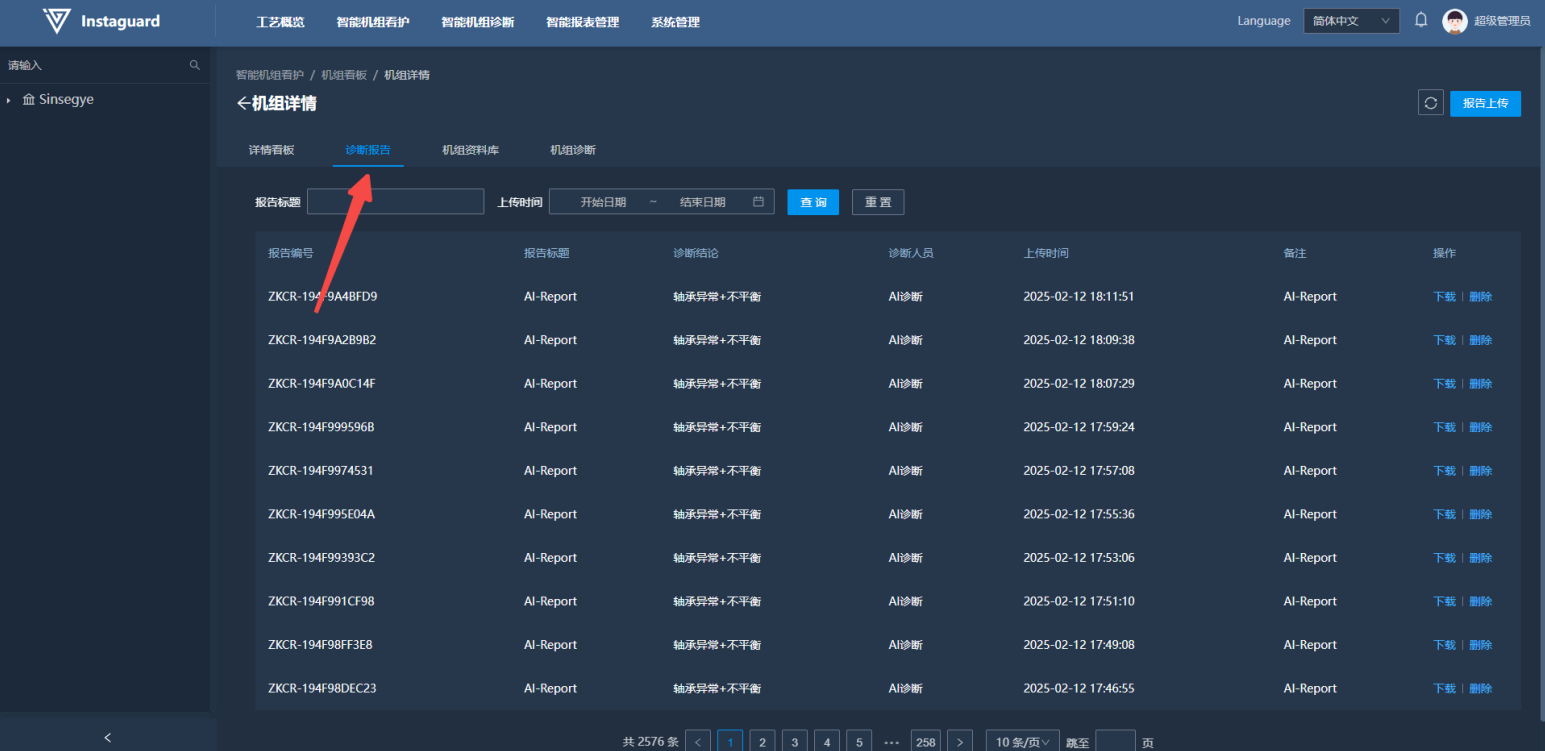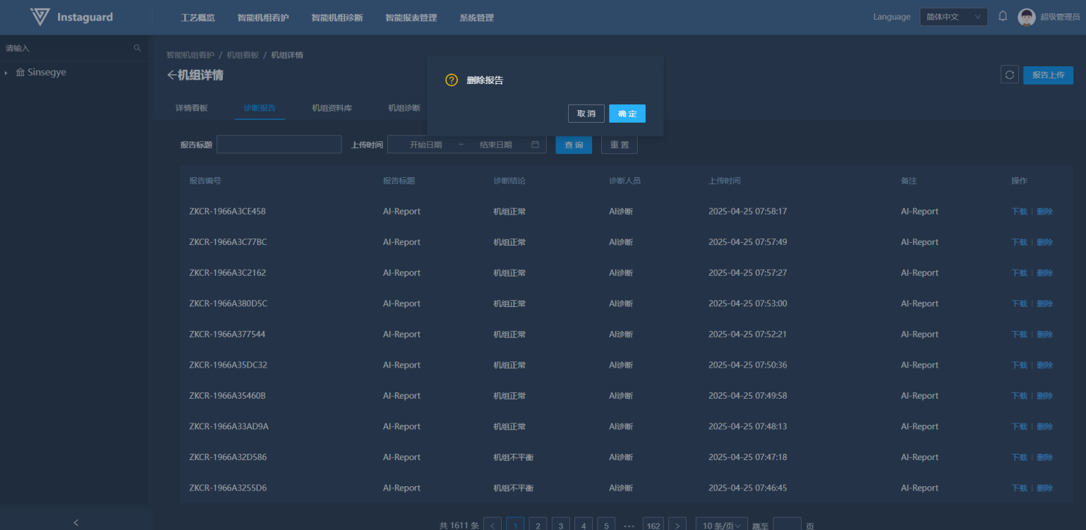 「智能机组诊断」→「智能看护报告管理」