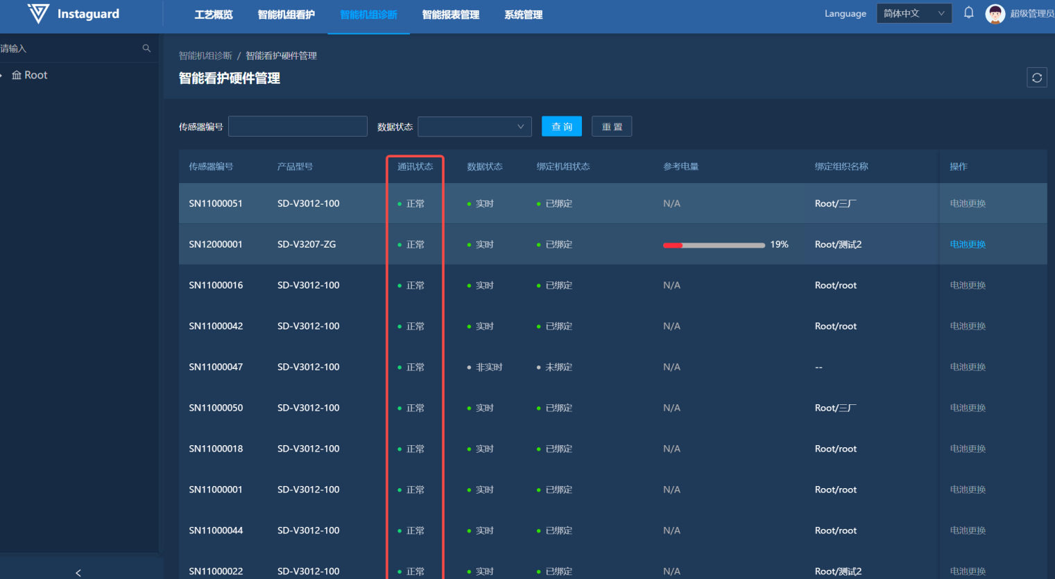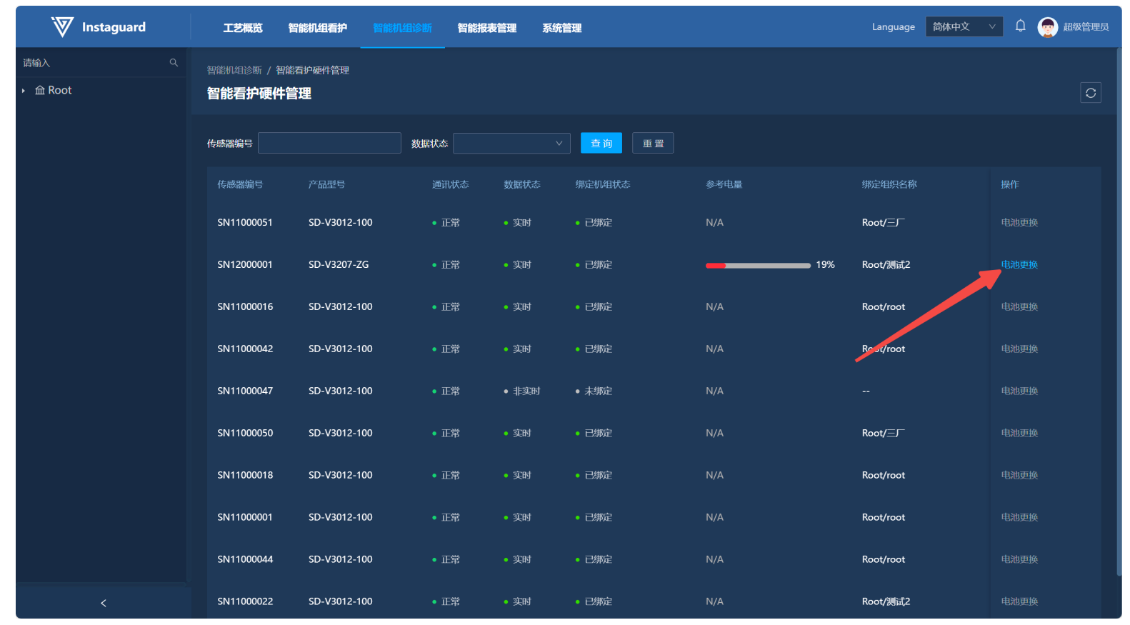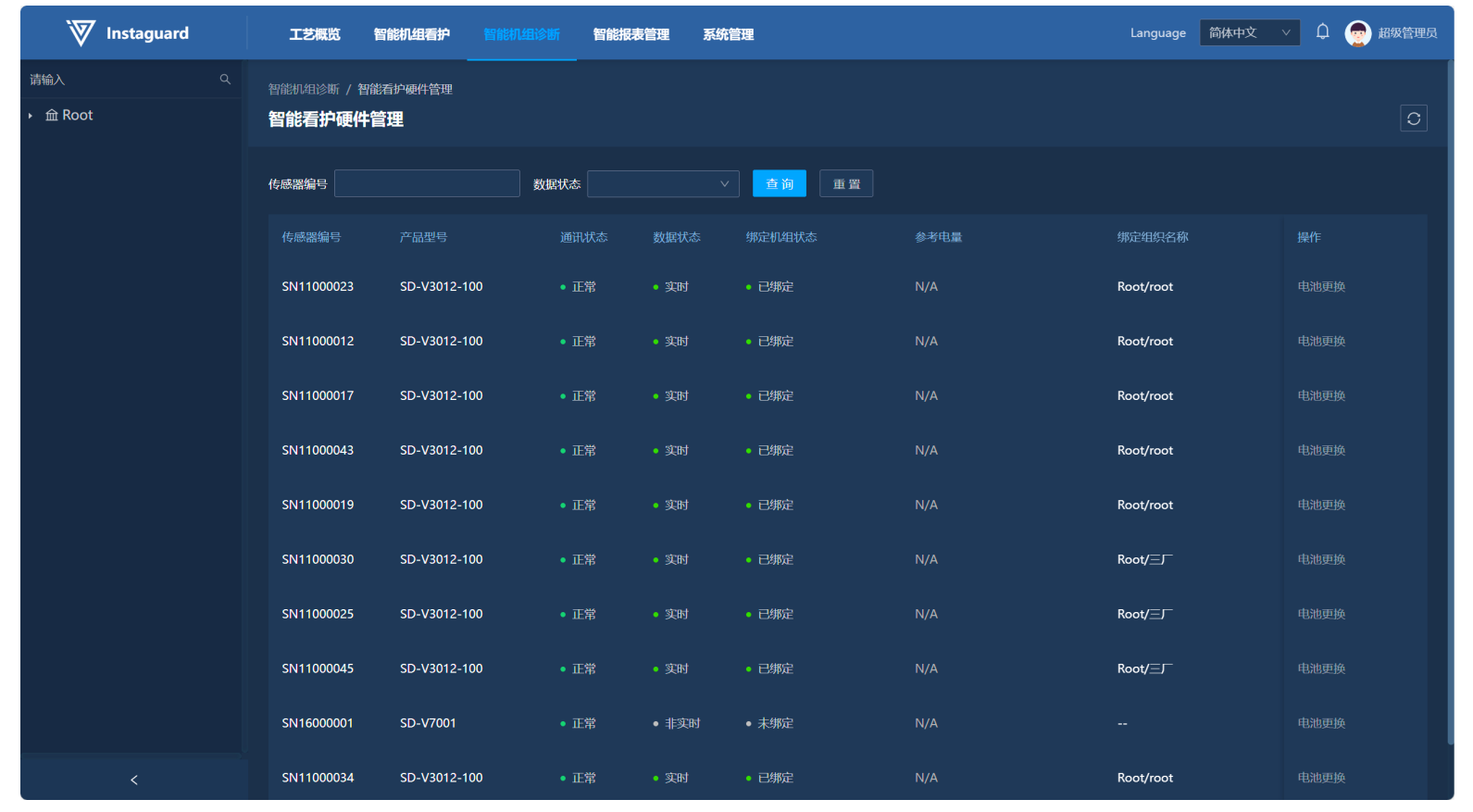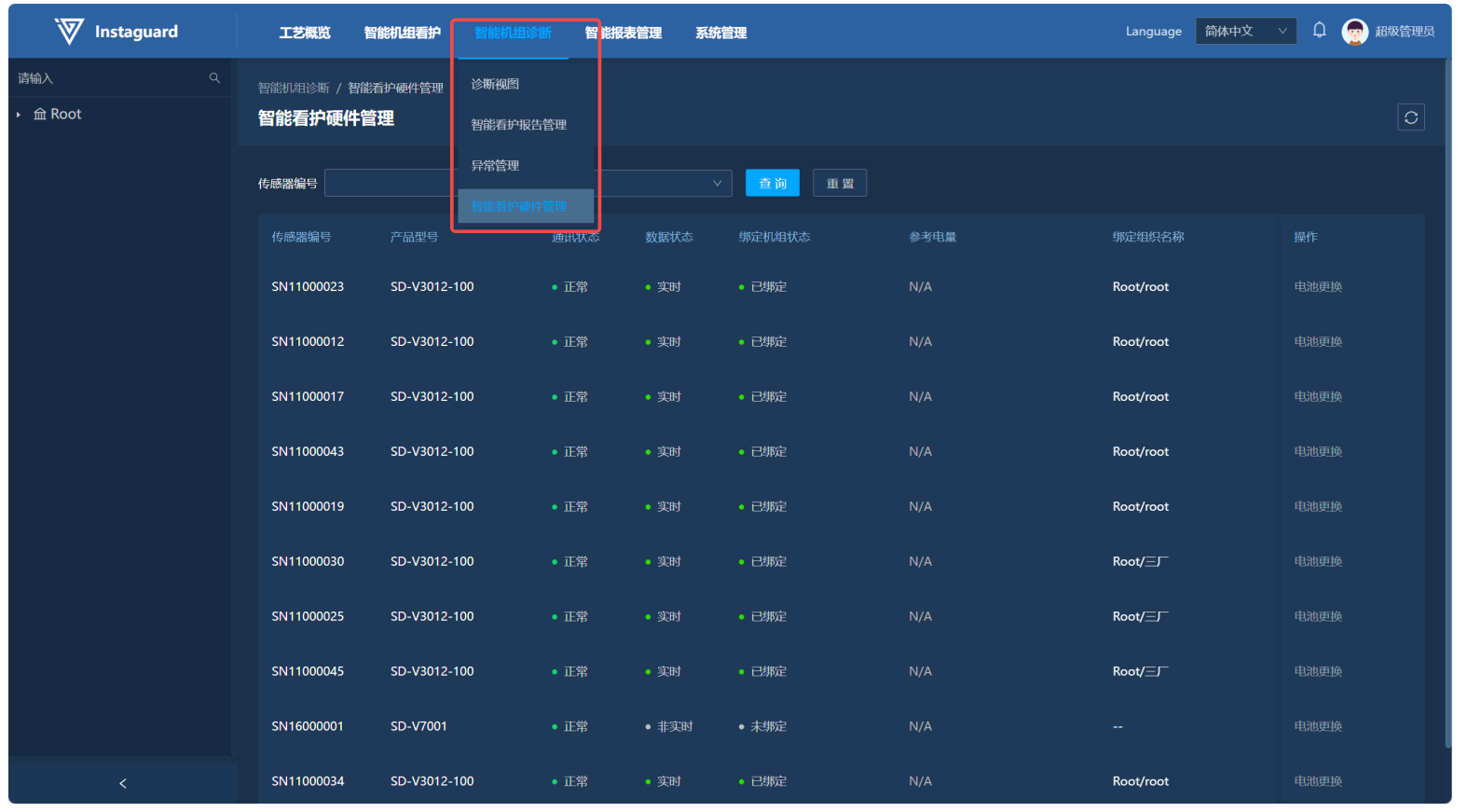「智能机组看护」→「设备管理」