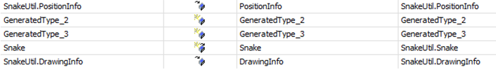 数据类型SnakeUtil.PositionInfo和SnakeUtil.DrawingInfo映射到现有数据类型(创建或映射列中的