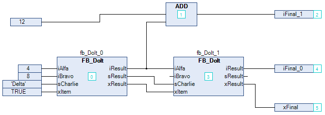 ⇒显示了对象的执行顺序。块和输入已相应编号,并反映了时间顺序。再次在CFC编辑器中单击时,该编号将被隐藏。