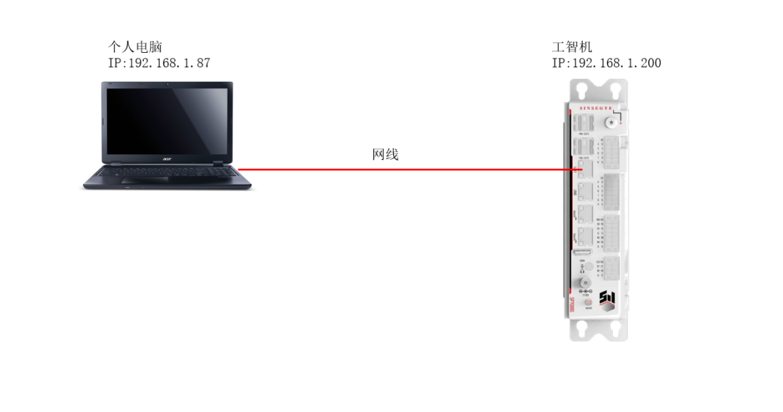 工智机通过固定地址网口192.168.1.200与个人电脑相连。