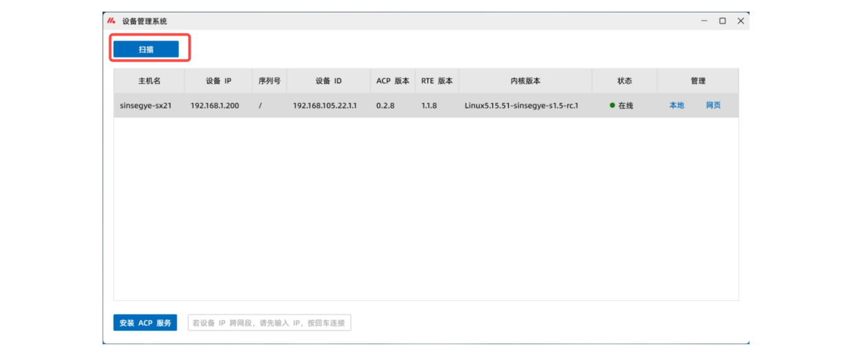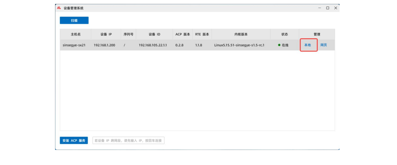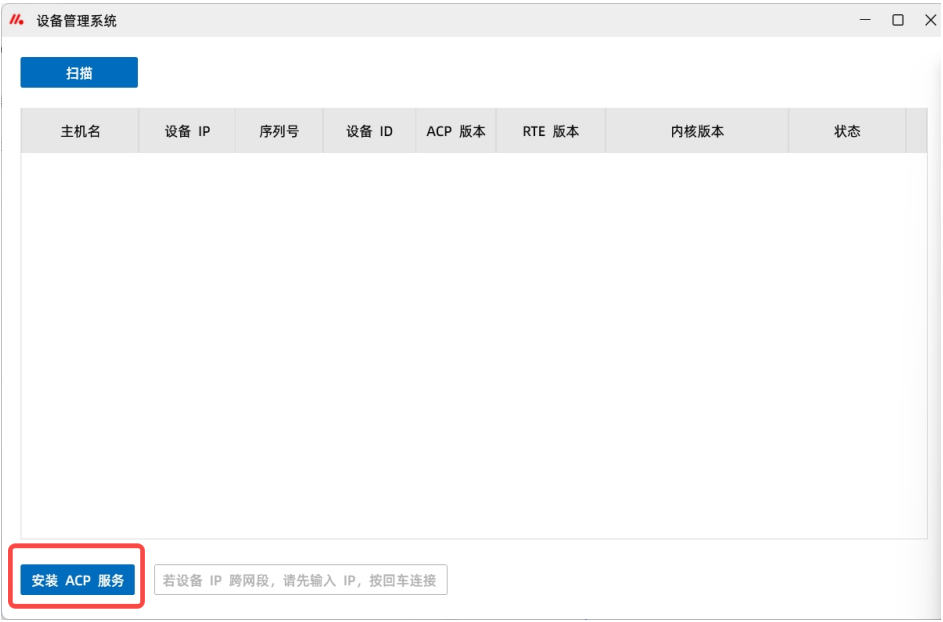 2.初次使用工智机,需要安装ACP通讯服务。点击左下角“安装ACP服务”。