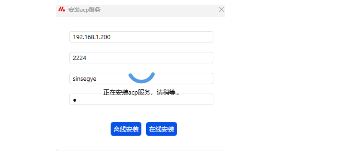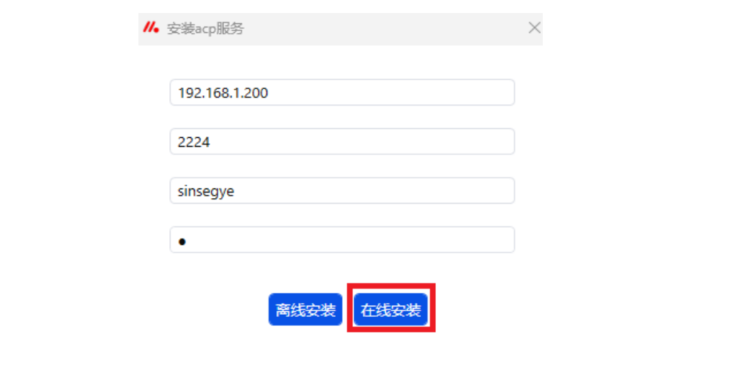 3.输入工智机固定IP地址、端口、用户名和密码后,点击“在线安装”。