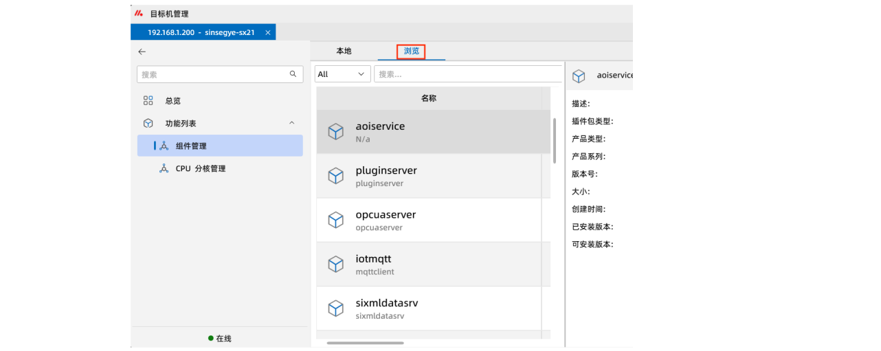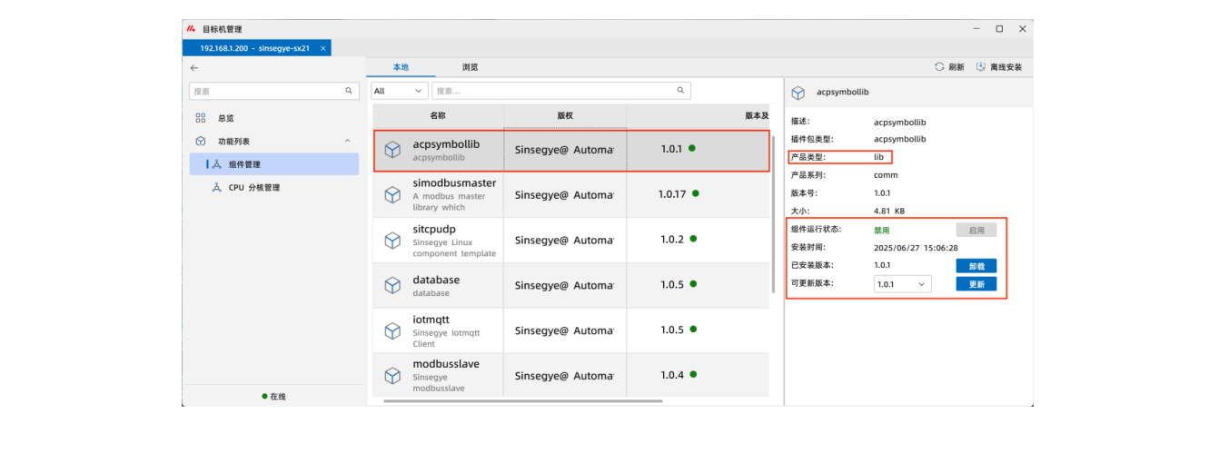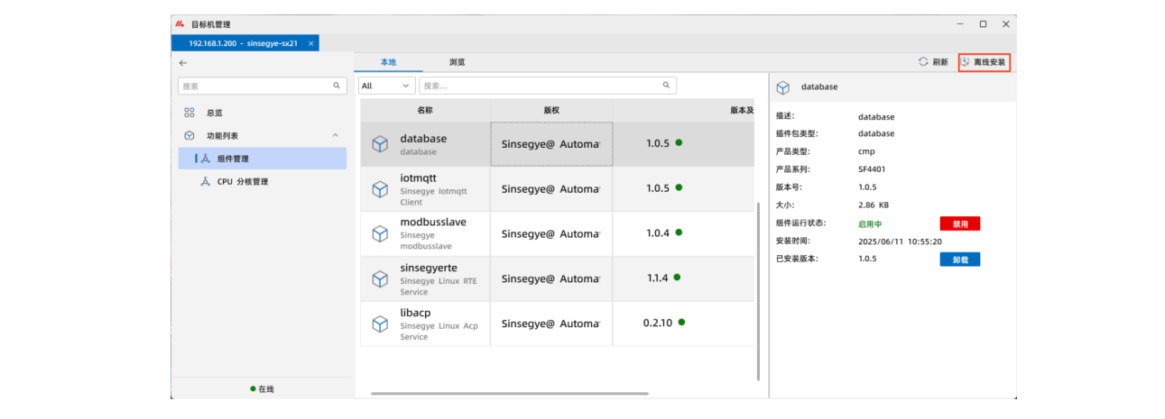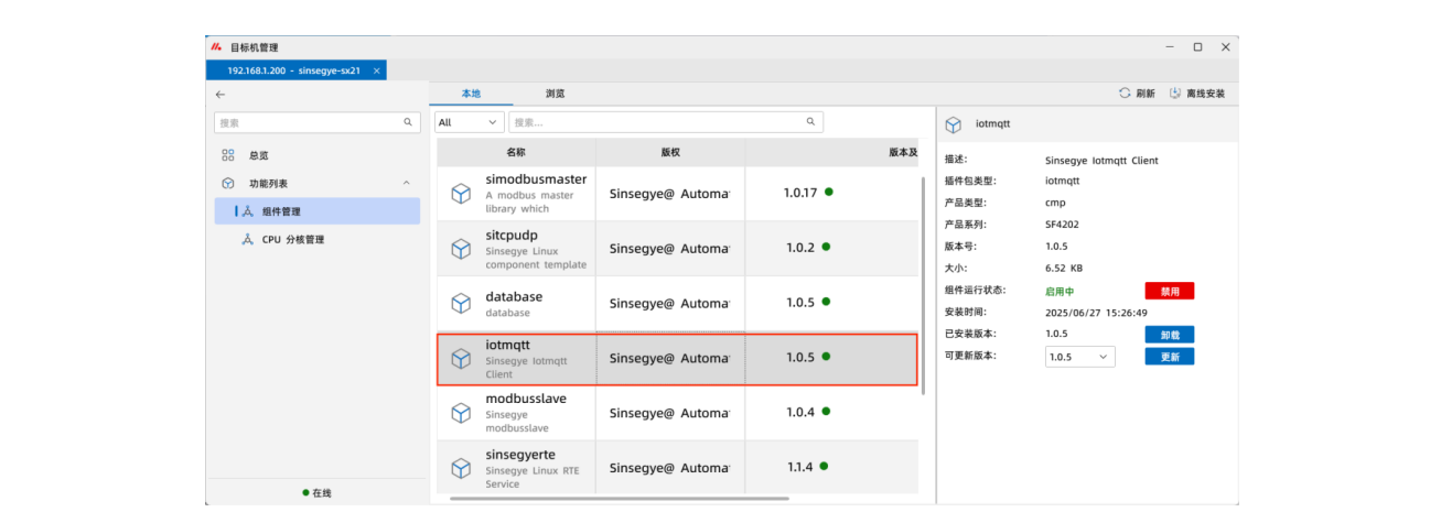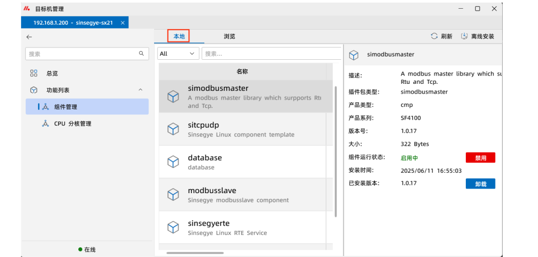 8.进入组件管理后,“本地”目录下为当前工智机安装的组件。