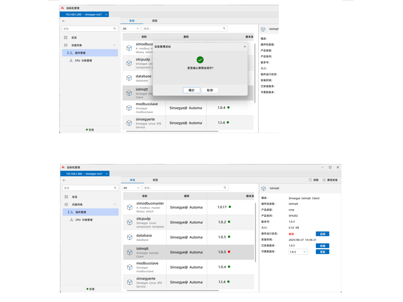 对于lib类型的组件,没有“启用”和“禁用”。 安装完成后,工智机在特定目录下添加库文件。 卸载后,删除工智机特定目录下的库文件。