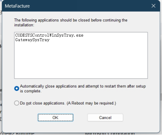 5. 中途如果弹出一些弹窗,例如下图(系统同时安装了CODESYS和METAFACTURE,卸载METAFACTURE时就会出现),确认关闭即可。
