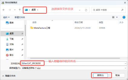 输入文件名和文件保存的位置,点击【保存】即完成。导出的是一个压缩包,解压缩后即可得到导出的设备描述文件。