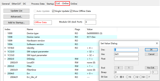 可在COE参数中对模块相关参数查看或修改,参数设置断电不保存。