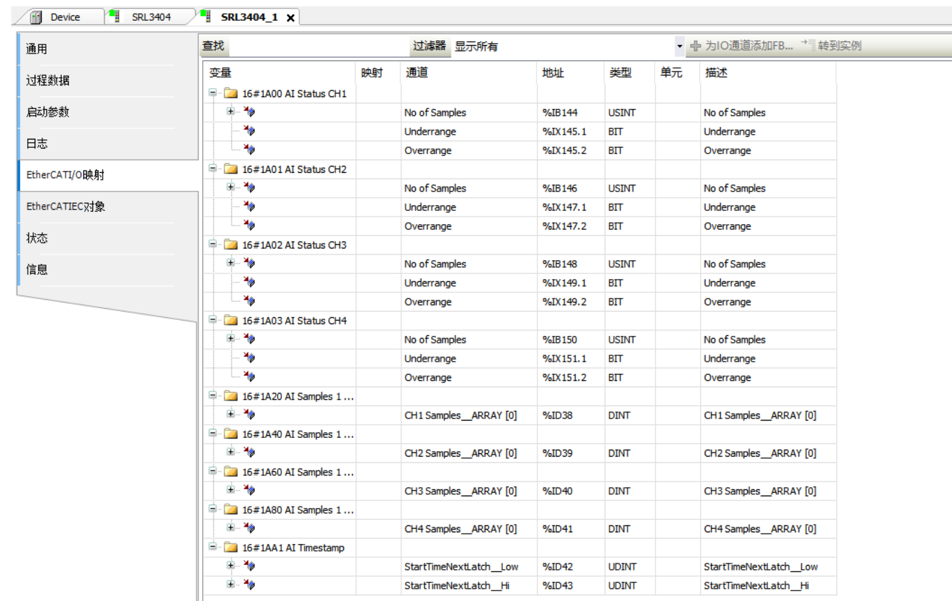 | AI Samples(CH1~CH4) | CHx Samples_ARRAY[0]..Samples_ARRAY[31] | DINT | AI 采样值0 | |