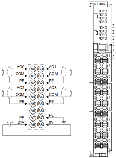 模块系统侧电源及现场侧电源分开配置使用,请勿混合使用。