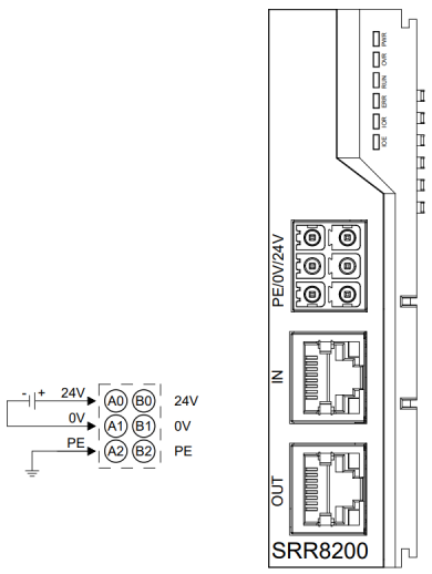 *24V内部导通,0V内部导通使用24VDC电源模块,参照接线方法,根据下图所示电路,将电源接好,同时将PE可靠接地(电源线推荐选用双绞线)。