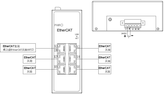SG8006L 的X1 网口固定用于连接EtherCAT 主站,其余网口接EtherCAT 从站。