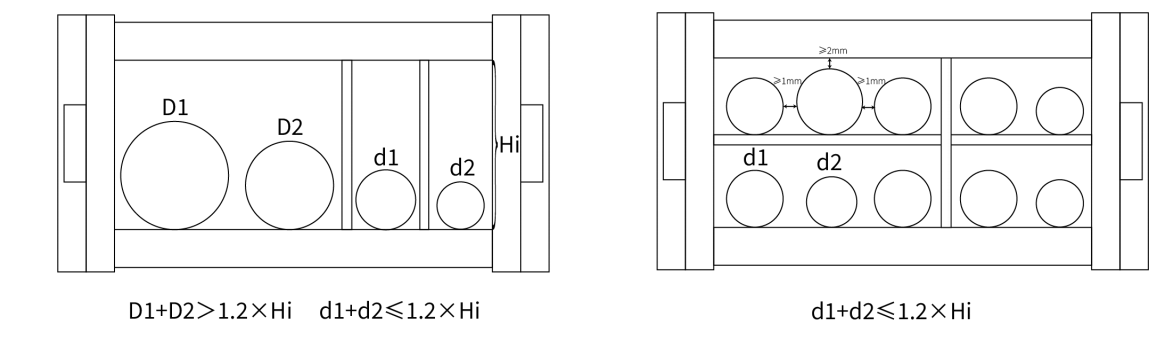 相邻的电缆之间不能相互翻越,因此电缆上方的空隙不应大于相邻电缆直径的50%