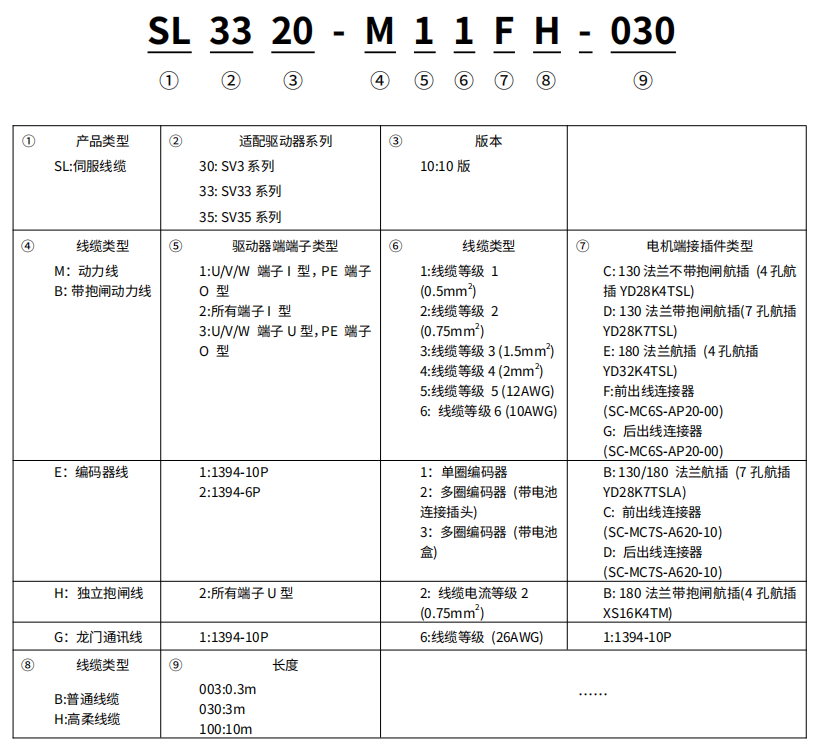 伺服线缆型号定义