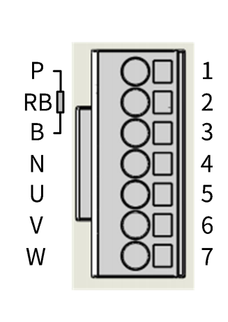 | 6 | P | 再生功能和直流母线端子 | 再生功能应用时,使用P、RB、B端子 | ||