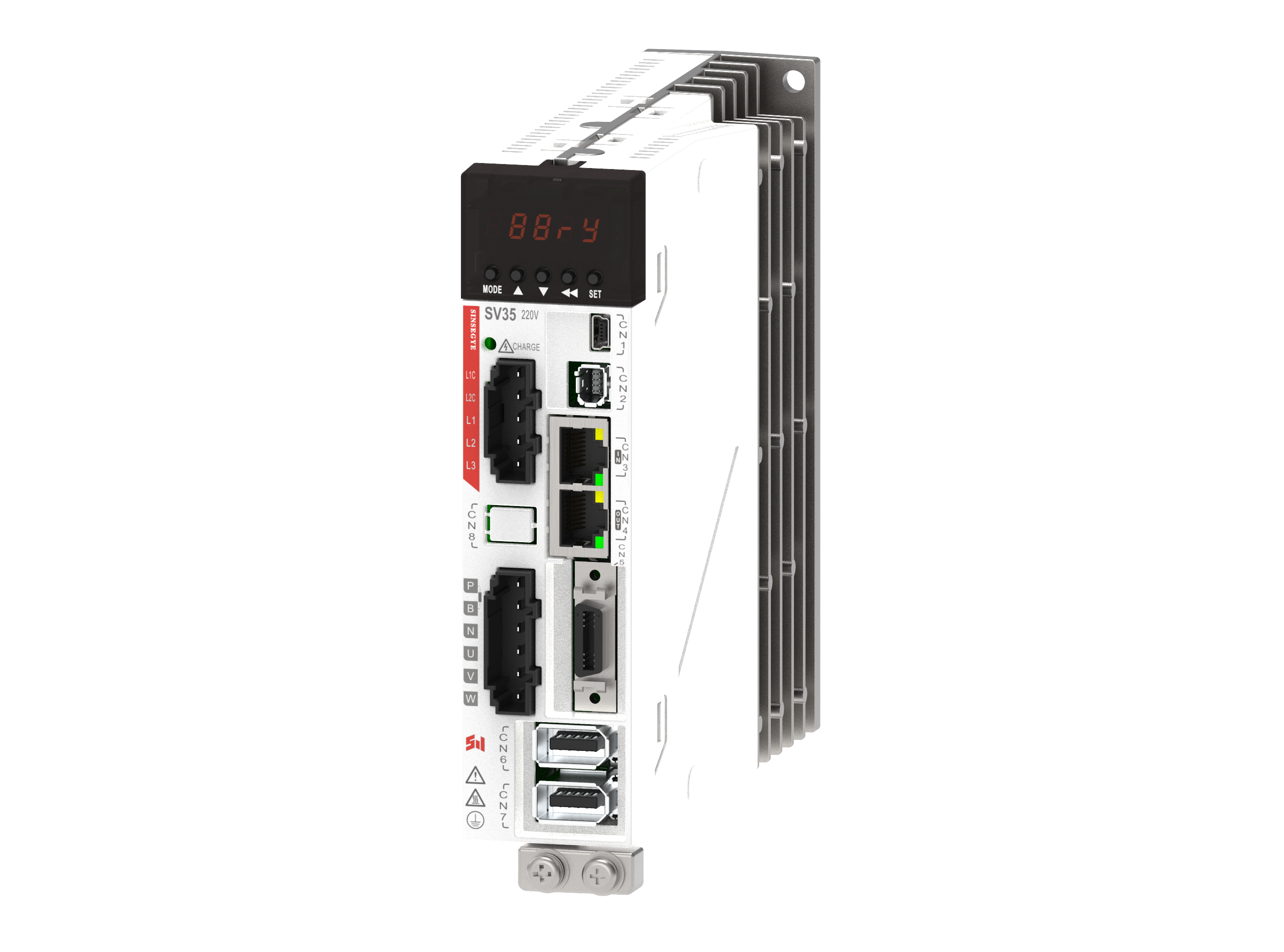 SV35系列伺服是中科时代自主研发的旗舰型交流伺服产品。该系列产品功率范围为0.05kW~11kW,支持脉冲、EtherCAT 、Profinet等通信协议。 SV35系列伺服具强劲的产品性能,可选配STO、龙门同步功能,处于行业领先水平;拥有一键自调谐、陷波器、振动抑制等高级功能,大大缩短了整定时间、增强了振动抑制功能,通过增加和改进振动抑制功能,可提高跟随性能,缩短整定时间。同时还能减少驱动时的振动(音)以及停止时机械前端的振动。