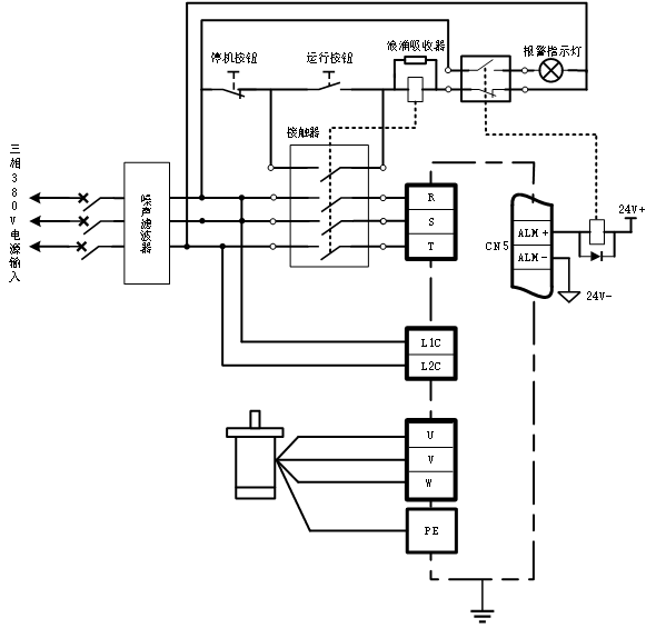 - 请勿将电源输入(R,S,T)接入到电机用输出端子(U,V,W);