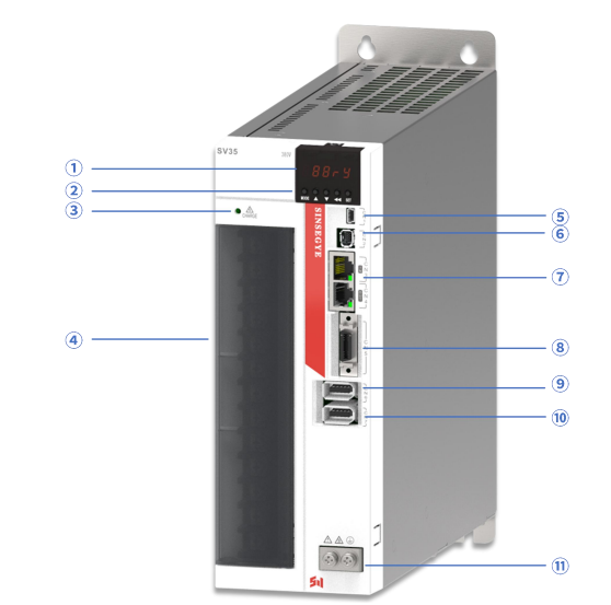 | ⑦ | CN3/CN4(通讯端子) | EtherCAT高速通讯端口 |