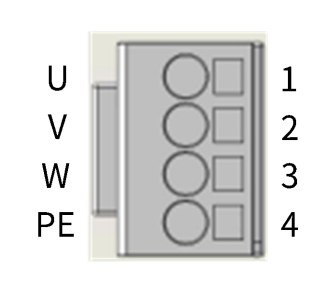 电机动力 1 U 电机驱动 连接伺服电机U、V、W三相及接地PE端子。