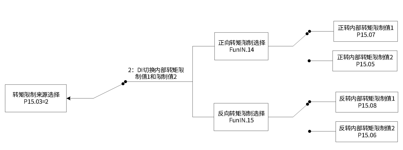 P15.03 = 2:DI切换内部转矩限制值1和限制值2