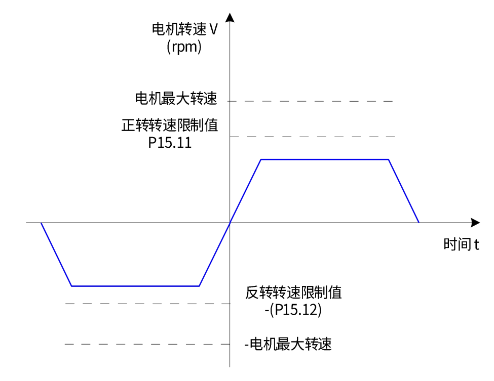 伺服驱动器根据实际的DI端子逻辑选择P15.11或P15.12作为正/反转速度限制值。