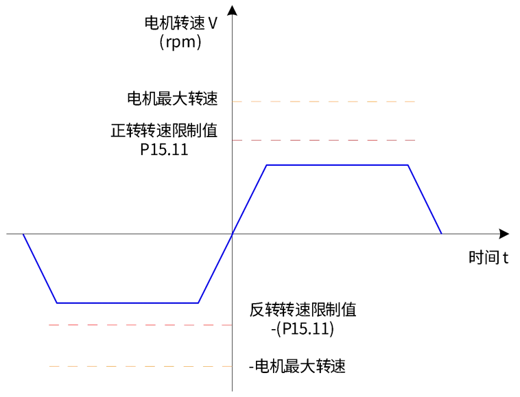 电机不同方向运动时,转速仅由内部功能码P15.11和P15.12决定。