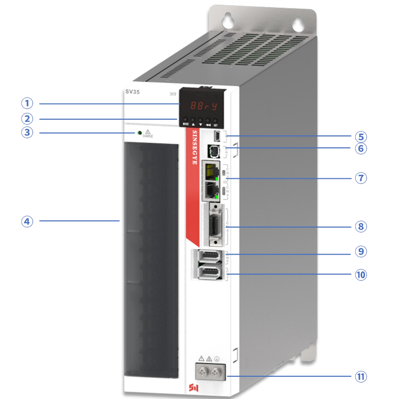 | ⑧ | CN4(ENC编码器连接器) | 编码器接口,连接至伺服电机上的编码器 |