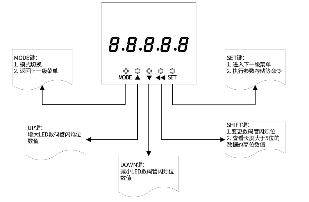 SV3系列伺服面板由按键和数码管显示器组成,可用于信息与参数显示、参数设定、用户密码设置及一般功能的执行。