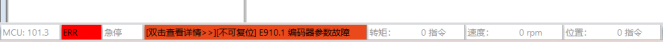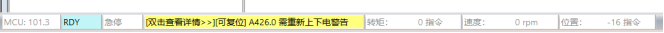 当设备故障时,调试软件状态栏实时提示用户(如下图),用户可双击故障区域,查看故障详情,红色标识故障,黄色标识警告。